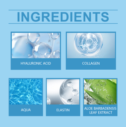 - Ingredients: Hyaluronic acid, collagen, elastin